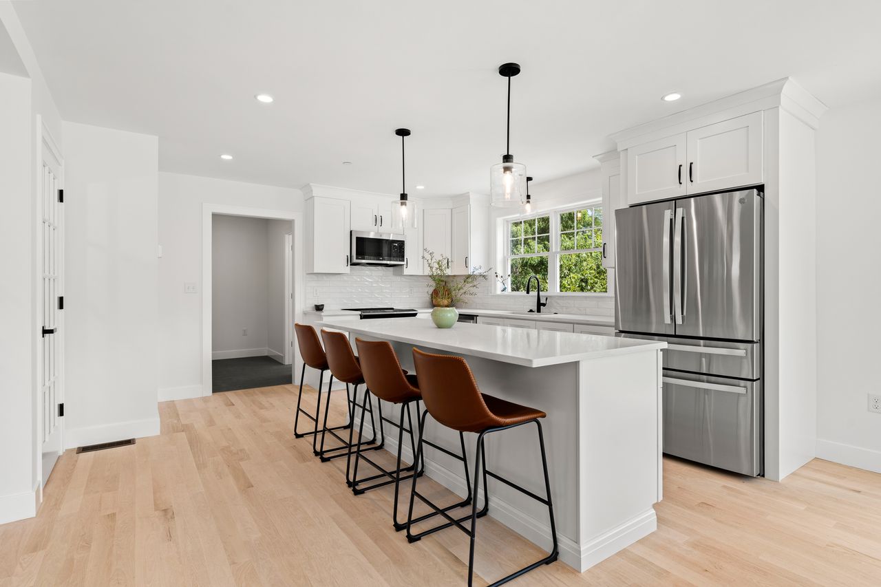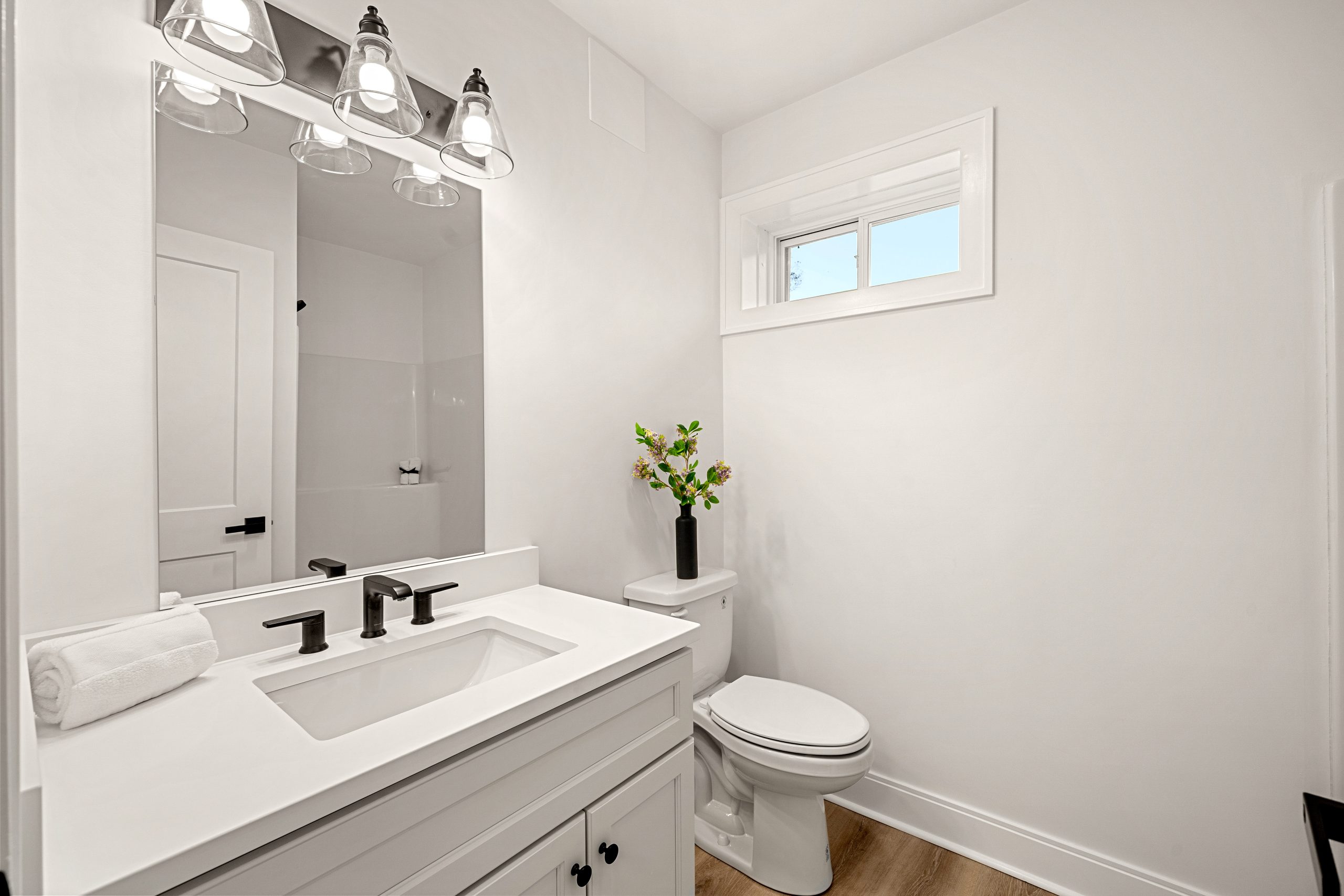 The finished lower level provides exceptional flexibility with a bedroom or bonus room, full bath, and a comfortable living area—complete with utilities in place for a second kitchen. Large above-grade windows fill the space with natural light, making it ideal for guests, extended living, or a turnkey ADU. Additional highlights include a one-car garage, ample storage, and an energy‑efficient, solar-ready design.