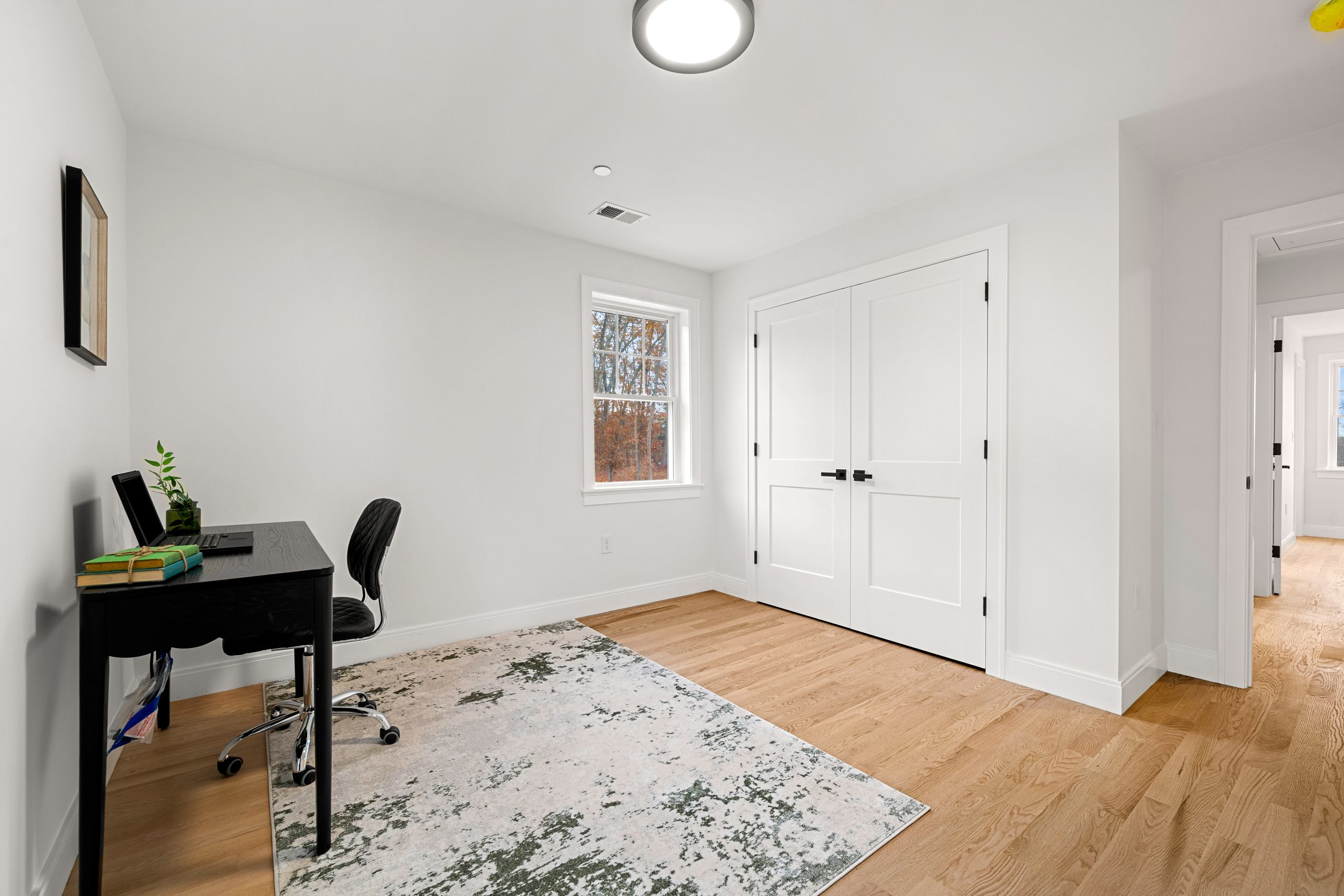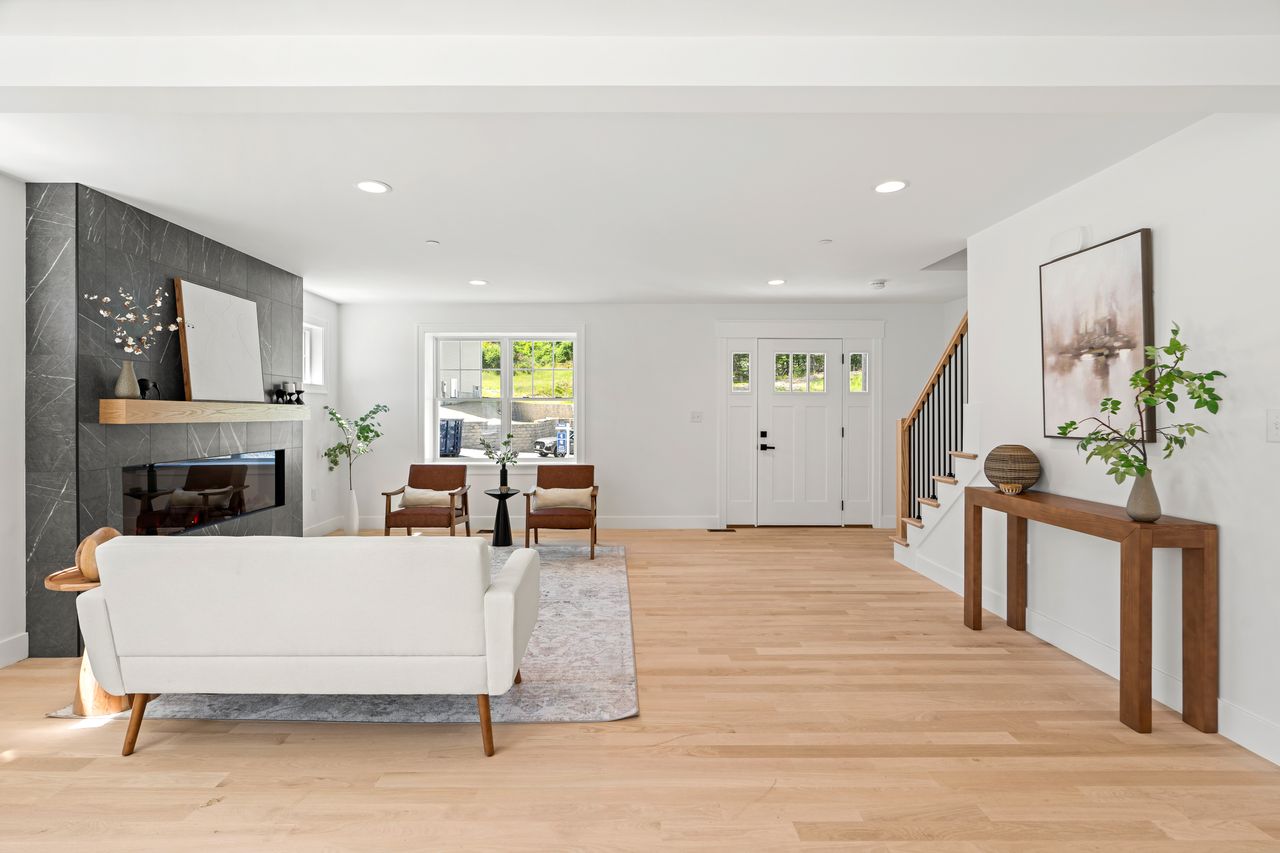 The Hearthside offers 3 spacious bedrooms, a dedicated office, and 3.5 baths across a bright, open layout. The kitchen features white cabinetry, quartz countertops, and flows into a spacious living room with a cozy, tiled fireplace and custom white oak mantle. Enjoy first-floor laundry and a mudroom off the one-car garage. Upstairs includes a serene primary suite and two additional bedrooms. The finished walk-out lower level with a full bath is perfect for anything you desire and is also ready for an accessory apartment if you so choose. Large windows bring in great natural light. Additional features include a walk-up attic for storage or expansion and beautifully designed outdoor space.