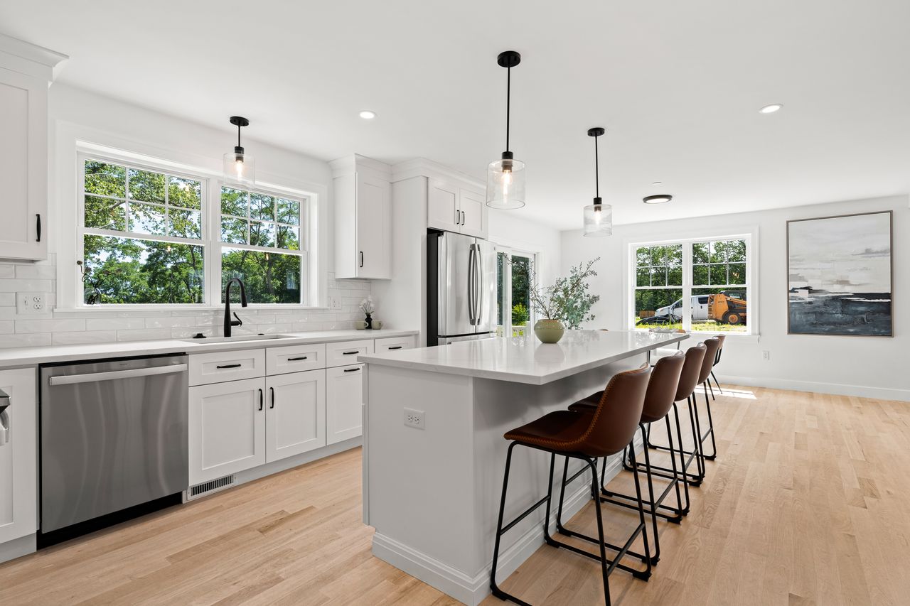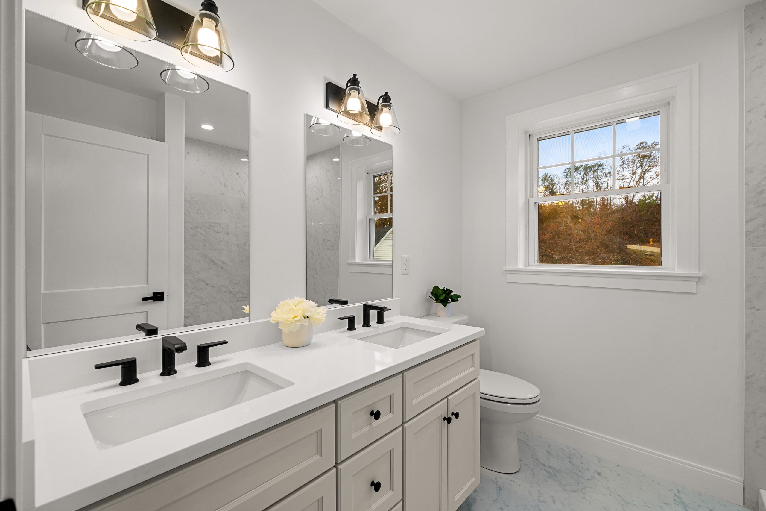The Hawthorne is a Cape Split–style home offering 4 generous bedrooms and 3.5 baths across a bright, open layout designed for modern living. The gourmet kitchen features a large center island and flows effortlessly into the inviting living spaces. On the main level, enjoy a beautifully appointed living room with a stylish fireplace, a spacious family room, convenient laundry, and a half bath. Upstairs, the serene primary suite includes a luxurious bath with a double vanity, walk-in closet, and peaceful views, along with two additional bedrooms and a well-appointed hall bath.